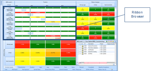 Within the ribbon browser, you create ribbons, segment by phases, and apply metrics.