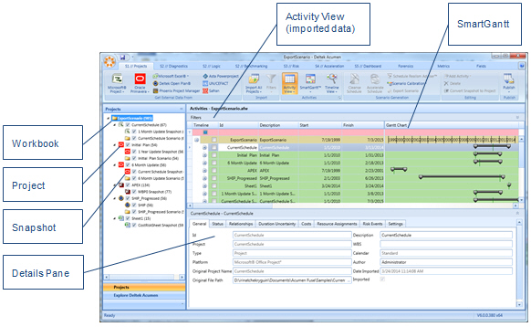 This tab includes Projects and Details panes, and Activity and SmartGantt views.