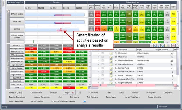 As you click on an analyzer cell, the activities shown within the ribbons are automatically filtered to correspond to the activities in the activity browser.