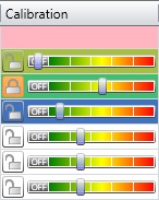 Calibration works in a hierarchical manner. When you move a calibration slider for a parent node, calibration for the parent and all unlocked child nodes changes. In addition, the calibration padlock to the left of the parent slider changes to locked. When a node calibration is locked, its calibration level won't change when the calibration of a parent node is changed.