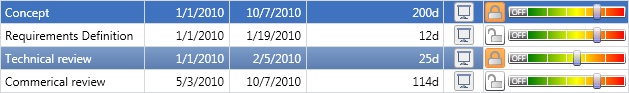 Each activity row includes a duration calibration slider which allows you to calibrate the activity duration and immediately view the impact on the rest of the schedule.