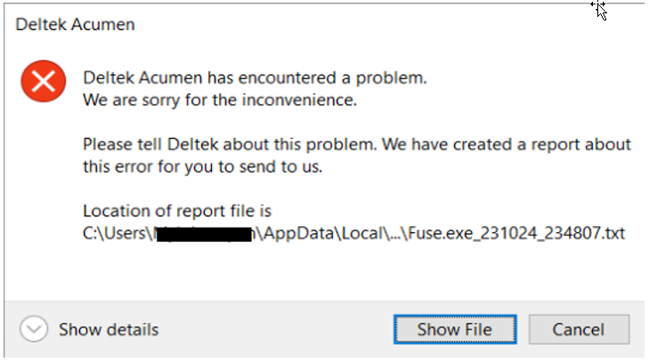 4. Close C:\Program Files\Deltek\Acumen 8.9\fuse.exe.config.