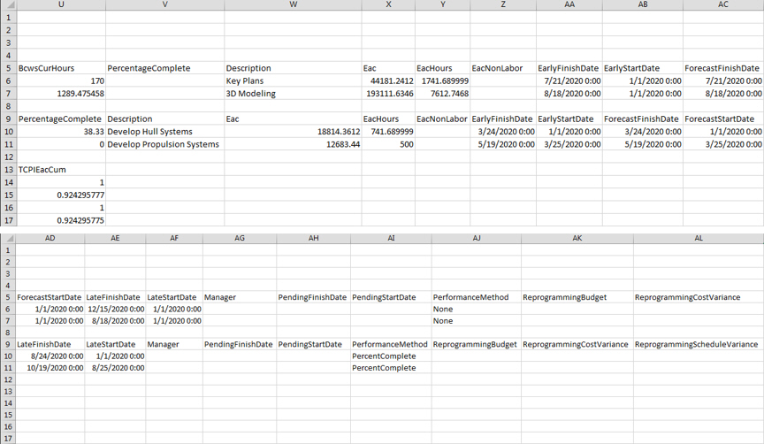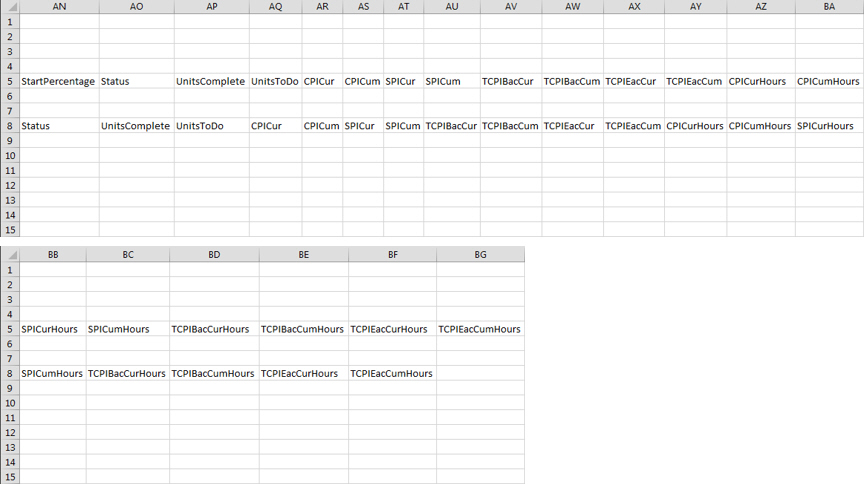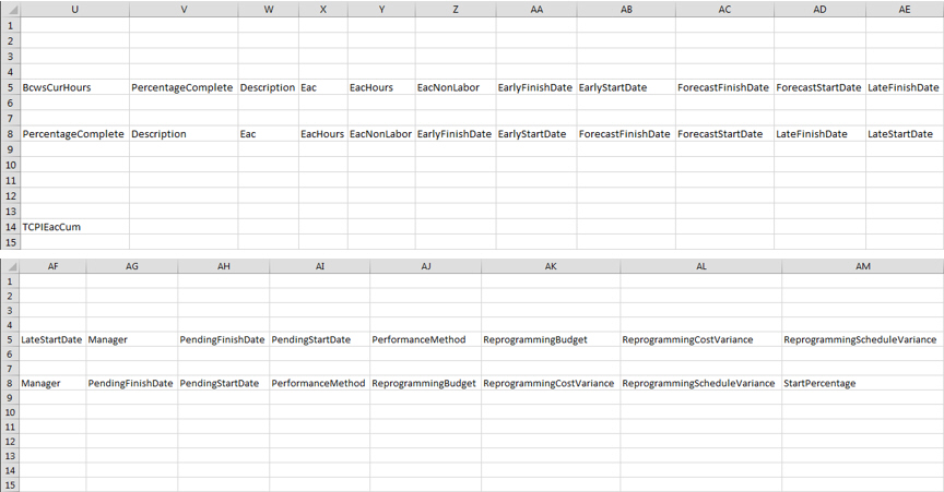 When you import cost data in Acumen using a .csv file, the data must be in a specific order, with specific data types. The screenshots below show the .csv file structure.