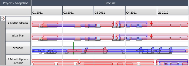 When you set the ribbon mode to Project/Snapshot, a separate ribbon is created for each project and/or snapshot within the workbook. In the case of a workbook containing a single project, a single ribbon is created. This is the default option when opening an analysis view.