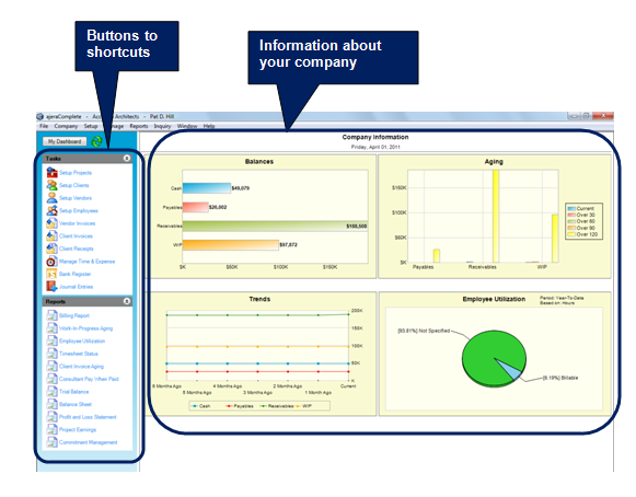 - Review graphs and reports of key information for your firm. Depending on your security access, you may not see the company information.