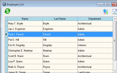 Lists and tablesYou'll learn how to use some basic features that will help you to quickly find what you need and change what you see in a list or table. To see it all in action, watch the Working with lists and tables video lesson (5:00) OverviewListsIn Ajera , much of the work you do begins with a list. For example, the Employee List window displays a list of your employees. You use the list to add or delete employees, or to open information for a particular employee so you can change it. Different types of lists show different types of information and therefore have different features. TablesOften, detailed information appears in a table. For example, client invoices appear in a table, where you can easily work with the information. Find a name or description quicklyOn list windows with names or descriptions, such as the Employee List window, simply begin typing the name or description.