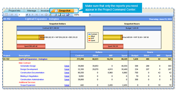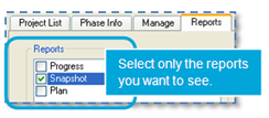 You can select which report tabs appear in the Project Command Center.