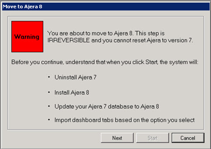 Step 4: Move to Ajera 8After you’ve test driven the Ajera 8 Sandbox, decide when you’re ready to move from Ajera 7 to Ajera 8. The update process makes it easy to bring the Sandbox dashboards you created into Ajera 8. Before you BeginWhen you decide to move to Ajera 8, choose to use the Sandbox dashboards you created, the original dashboard template, or no dashboards. The process automatically creates a backup of the Ajera 7 database and updates your latest Ajera 7 database to Ajera 8. In the Ajera 8 Sandbox, export the Sandbox dashboards you want to use in the live Ajera 8. To move to Ajera 8