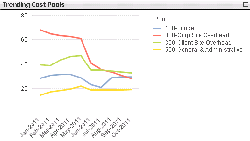 The Trending Cost Pools line chart compares how the actual indirect rates for the cost pools you select have trended over time.