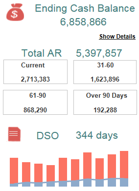Click Show Details to go to the Cash and AR/DSO dashboard to view and analyze your cash status and receivables performance at a more detailed level.