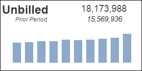 The Unbilled bar chart on the Projects tab displays unbilled project revenue as of the end of each period in the current fiscal year. Position the mouse pointer over a bar to display the actual unbilled revenue amount.