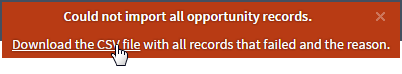 Click the Download the CSV file link in the message to review the records that were not imported and the reasons why the imports failed.