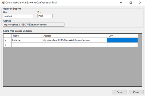 The Cobra Web Service Gateway Configuration Tool is a simple utility tool that easily defines the gateway’s listening endpoint and the Cobra Web Service endpoints.