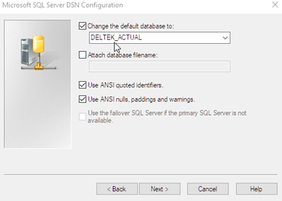 In this example, the database is named DELTEK_ACTUAL.