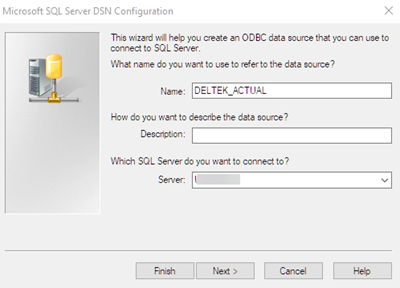 4. Enter a name for the data source so you can easily recognize it in Cobra. In this example, the data source name is DELTEK_ACTUAL.