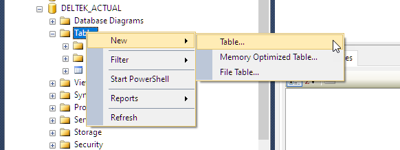 5. Right-click Tables and click New, and then click Table...
