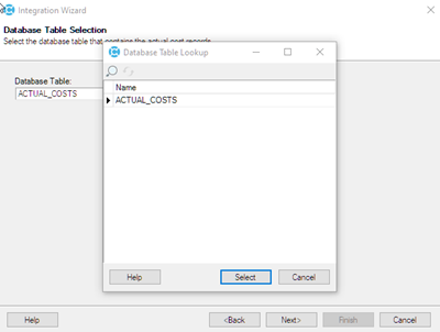 8. Select the table holding the actual costs, and click Next.