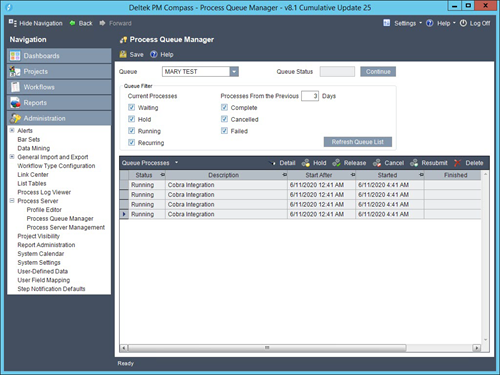 You can view the job status and process logs in PM Compass.