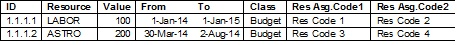 Value Description <Ignore> Select this value to represent fields that the process should ignore during the import process. Control Account field 1 prompt This value corresponds to the prompt assigned to Control Account Field 1. Control Account field 2 prompt This value corresponds to the prompt assigned to Control Account Field 2. Control Account field 3 prompt This value corresponds to the prompt assigned to Control Account Field 3. Work Package prompt This value corresponds to the prompt assigned to the work package. You can select a work package code without control account and work package keys. Work Package Manager This value corresponds to the work package manager assigned to the project. Resource This value is available only when you are importing data from a single file. This value corresponds to the resource assignment for the selected cost set or class type. From Date This value is available only when you are importing data from a single file. If this value is not selected or contains empty dates, the resource uses the activity start date. To Date This value is available only when you are importing data from a single file. If this value is not selected or contains empty dates, the resource uses the activity finish date. Curve This value is available only when you are importing data from a single file. If this value is not selected, the values are spread using the linear curve and the Spread Weight Options in Project Properties. Class This value corresponds to the class associated with the resource. <Individual Results> This value separately lists each result defined for the selected project on the Resource File Properties dialog box. Cost_date This value is the date of the import if you are using a current period file. If the Cost_date field is missing, the current status date is the assumed import date. Project Select this value if: - You selected a master project on the Project Selection page.