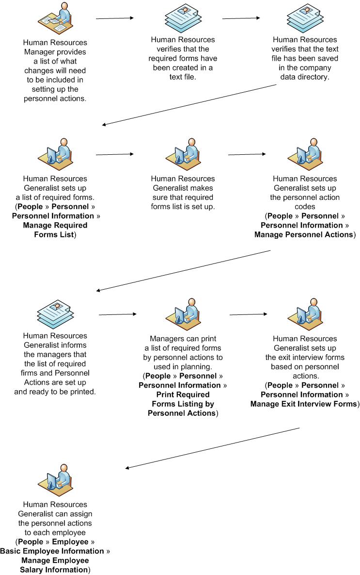You company needs to perform multiple tasks to complete the setup and processing of personnel actions.