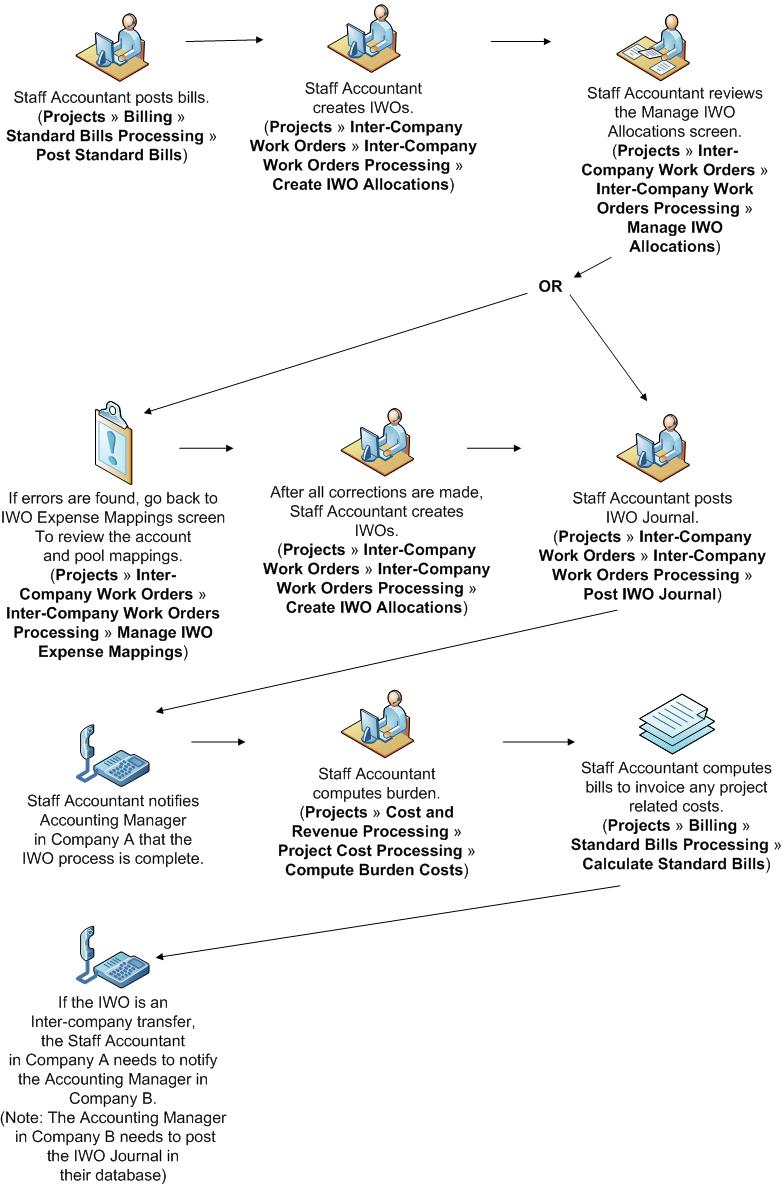 The Inter-Company Work Orders Process Flow describes the overall process involved in the Inter-Company Work Orders module.