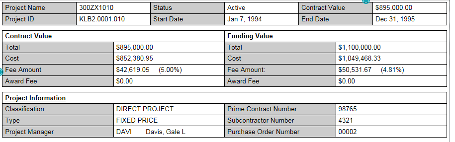 The Project Drill-Thru report displays the project details of a customer such as contract and funding value.