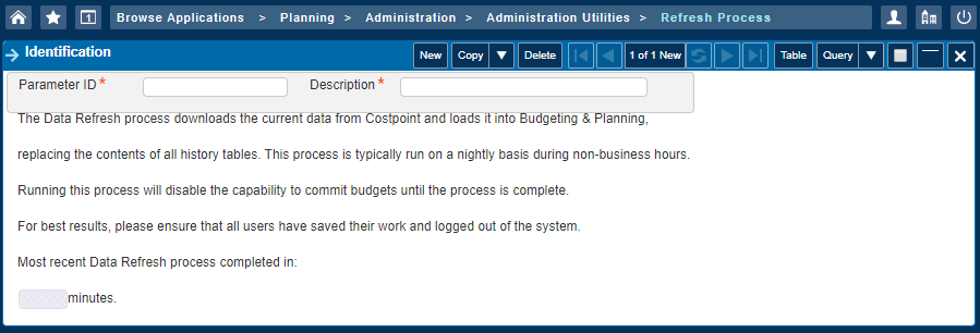 Note: Refer to the Costpoint online Help for more information about running the Refresh Process utility.