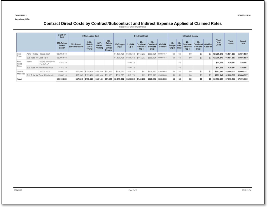 Parent Topic: Schedule H — Direct Costs by Contract/Subcontract Applied at Claimed Rates