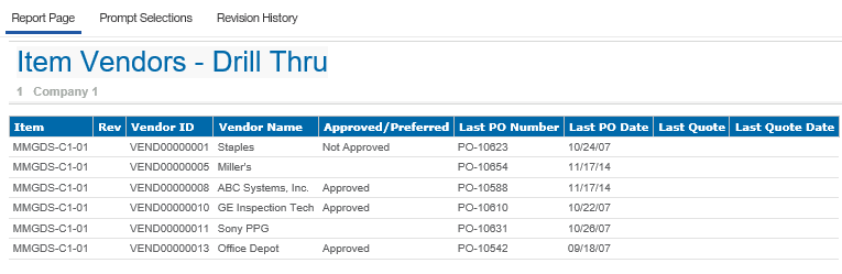 Click the Good value to drill thru the Item Vendor List.