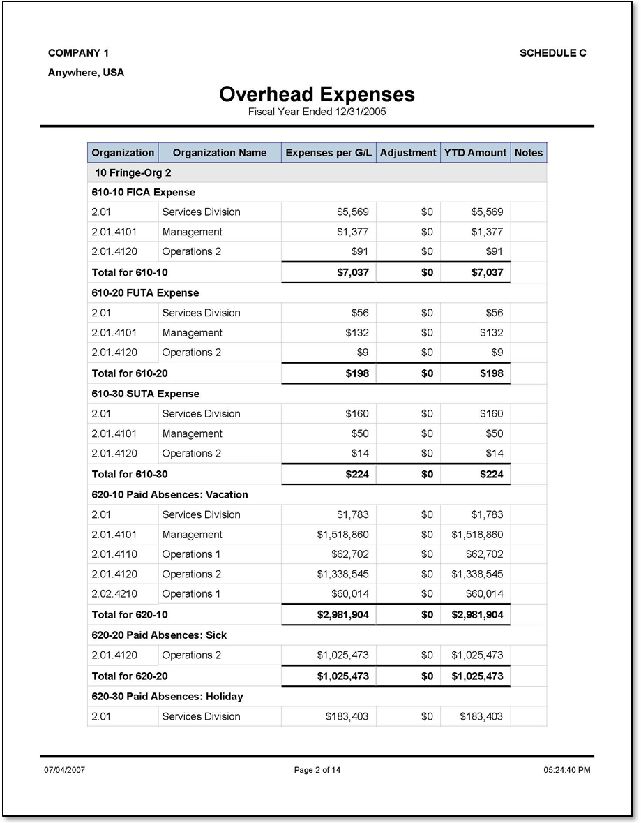 Sample Overhead Expenses report.
