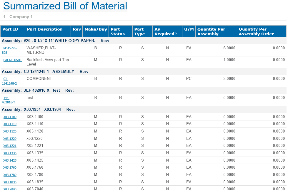 Parent Topic: Summarized Bill of Material Report