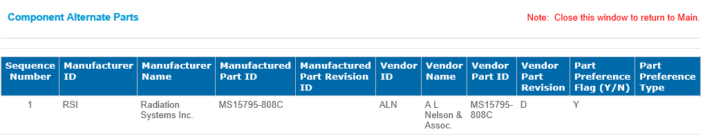 Click the Part ID value to drill thru the Component Alternate Part detail.