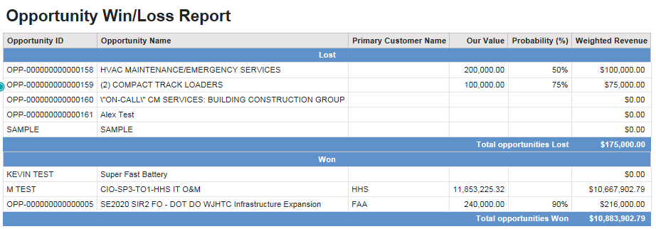 Opportunity Win/Loss Report
