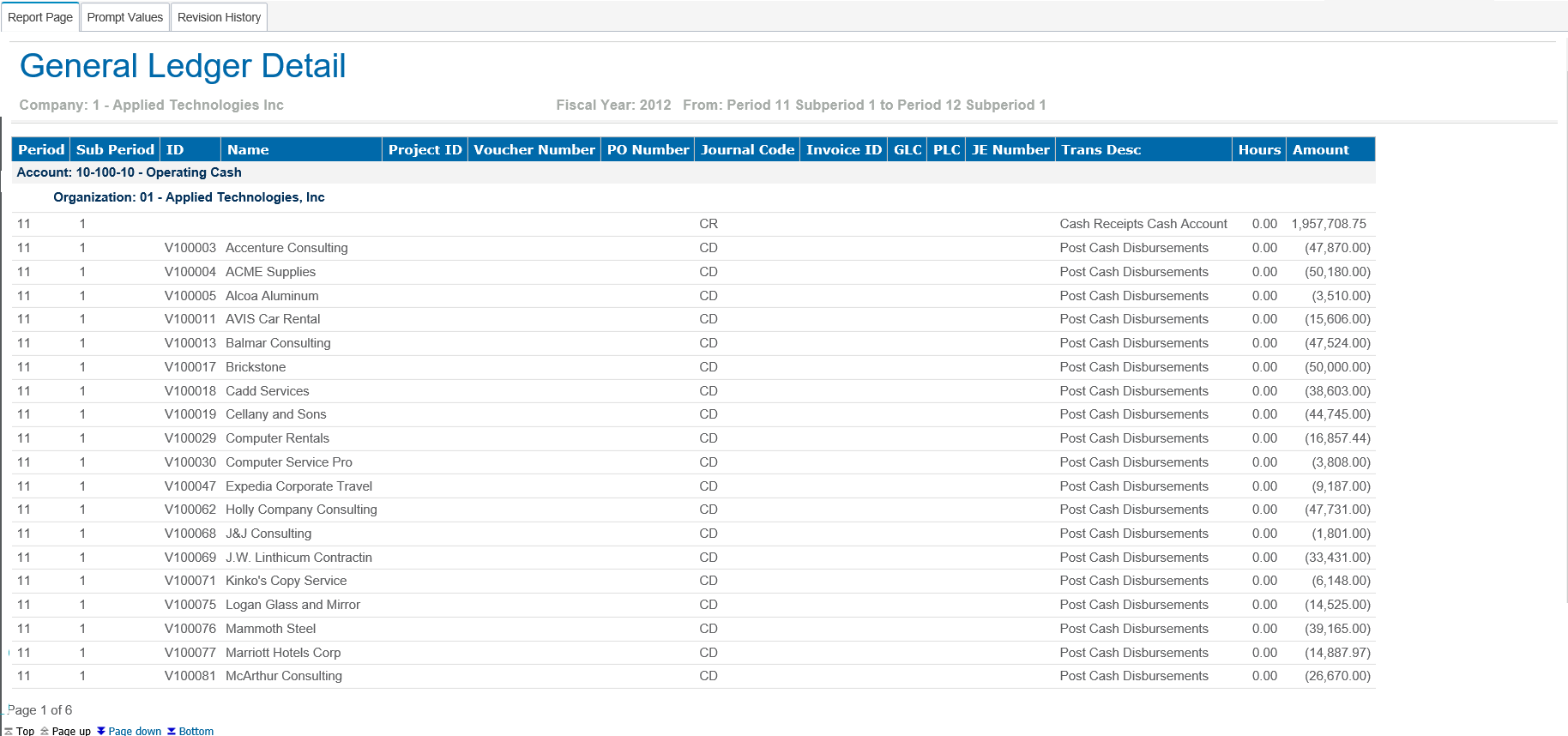 Sample General Ledger Detail report.