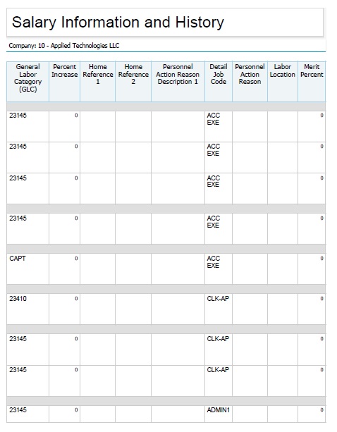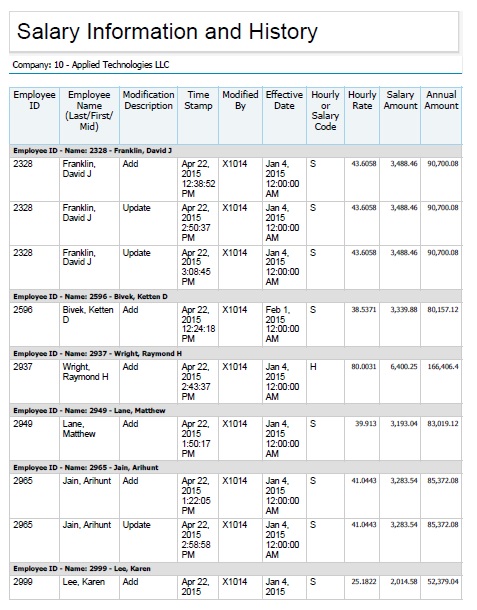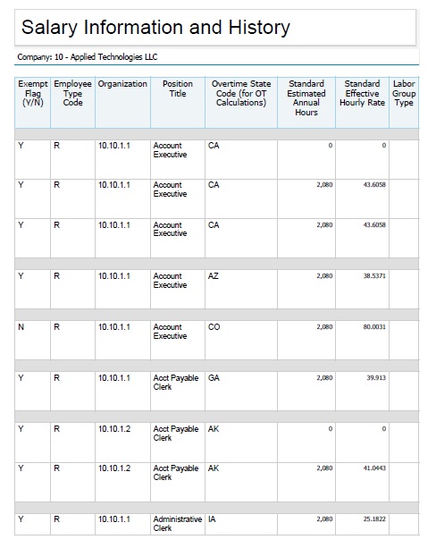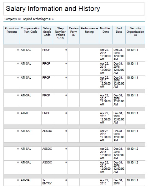 Sample Report - Salary Information and History