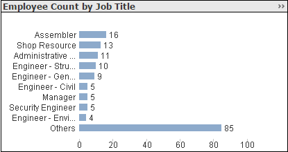 This chart presents the same data as the Employee Location/Title/GLC/Group Type list in the upper-left corner of the dashboard. Use the icon at the top of that list to indicate how you want to break down your employee count. For example, if you right-click and select Employee Title, this chart displays employee counts by job title.