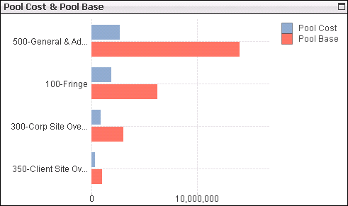 The Pool Cost and Pool Base chart enables you to visually compare pool cost and base amounts for selected cost pools in a horizontal bar chart.