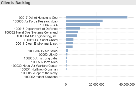 To display the amount of your current backlog contributed by each client, click Client in the Select a Dimension list and Backlog in the Select a Metric list.