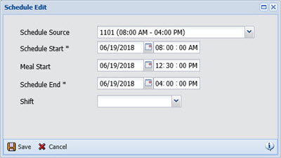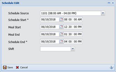 Controls whether the end times of Meals and Breaks will appear in the Schedule Edit form. This form is used to modify a person's schedule from the timecard using the Edit Schedule button in the Current Situation form.