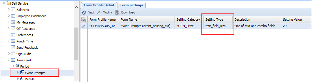 This setting controls the size of the text fields and combo boxes (combination text field and drop-down) in the Event Prompts pop-up form that displays when adding or modifying an event in the timecard.