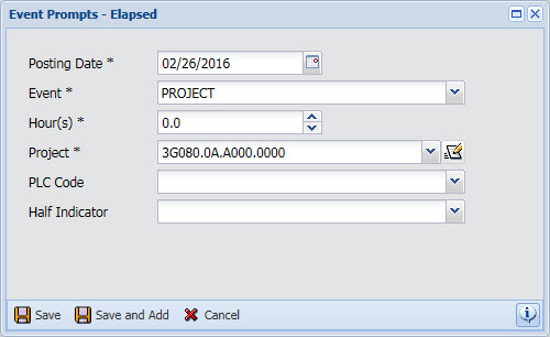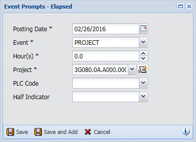 Event Prompts pop-up form in Period, Weekly, and Daily tabs of timecard (Self Service and Supervisor Review)