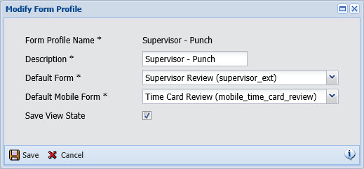 A user’s Security Role will determine which of the available forms in the Mobile Web Application the user can access. For example, you may enable the Time Card Review form for your supervisor's Security Role, but disable this form for your employee's Security Role.