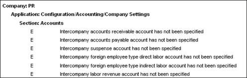 For example, the following report excerpt indicates that the setup of intercompany accounts for company PR is incomplete: