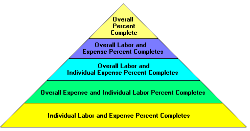 A graphical summary of the percent complete hierarchy shows which percent complete value takes precedence when more than one percent complete value has been defined for the project.