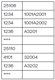Each block contains one header, one or several lines, and one footer. An example of this is shown below: