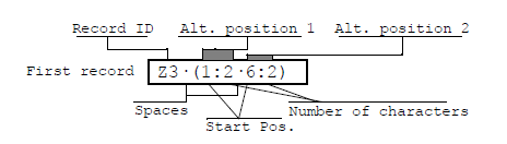 The syntax is shown in the graphic below. The illustration depicts the field “First Record,” in which the text “Z3 (1:2 6.2)” has been specified.
