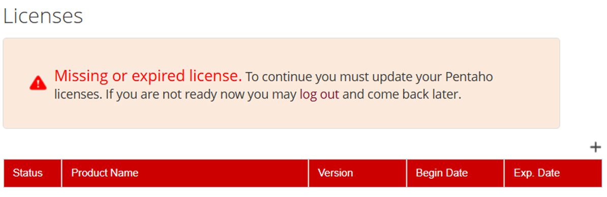 2. If you do not have valid licenses the first time you log into the License page, it displays a message referencing a missing or expired license. For example:
