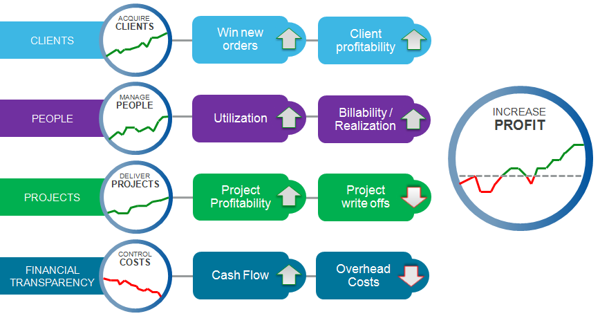 To understand the ways in which you can increase profitability, look at the Key Performance Indicators (KPIs) by which a Professional Services business measures performance and success.