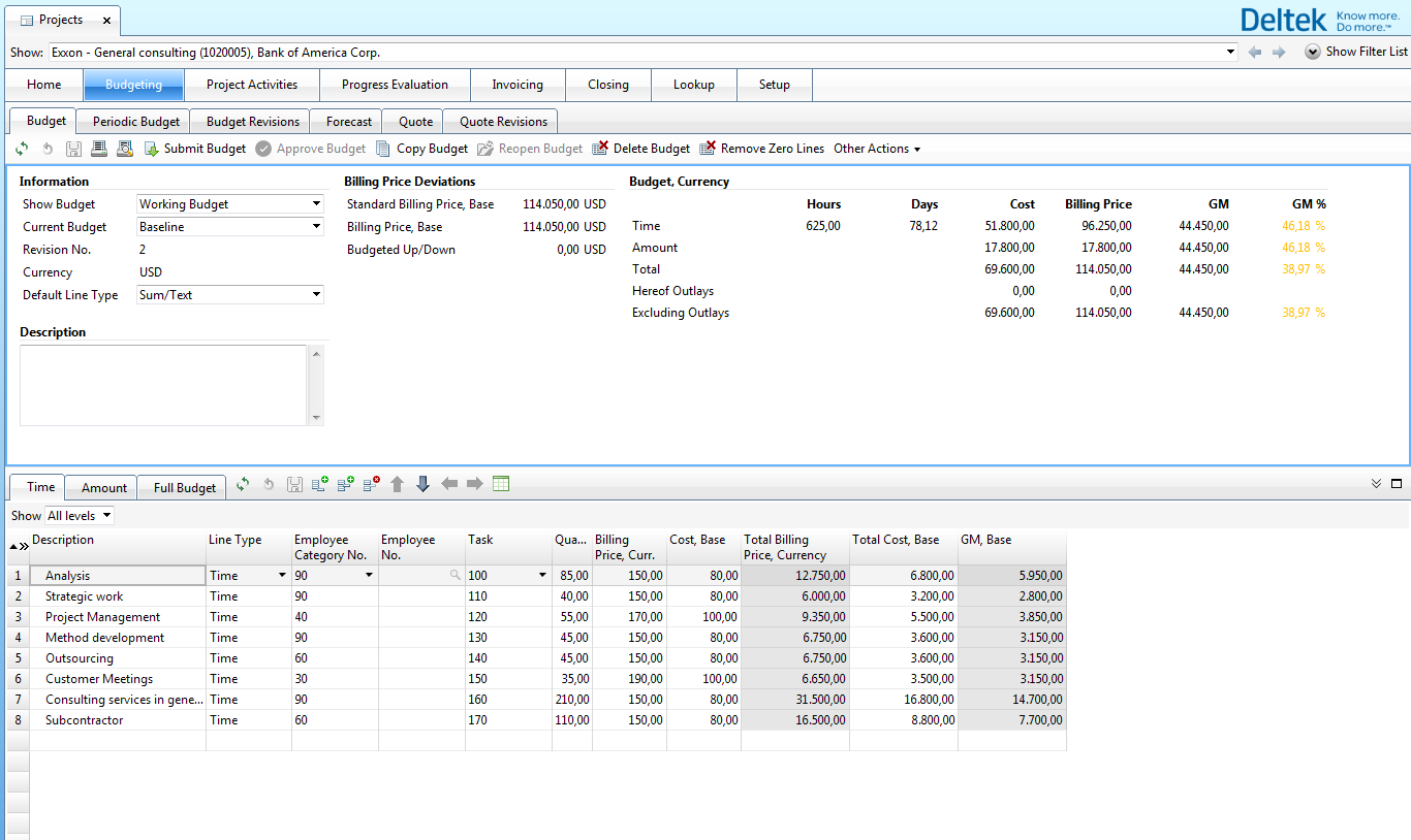 - More advanced budget functionality that can be enabled by using a full WBS.