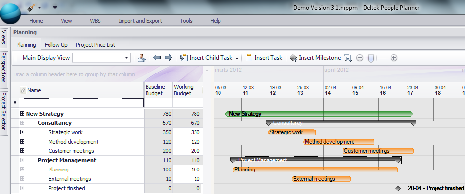 People Planner offers project planning capabilities, enabling you to break down the project (full WBS), or inherit the WBS and budget from Maconomy.